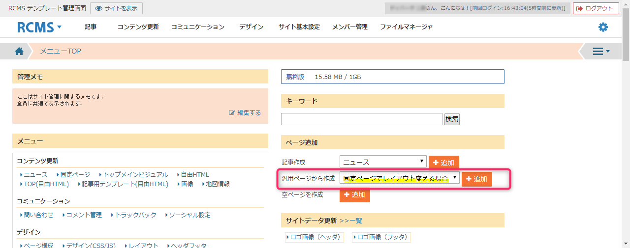 各項目を入力して、「追加する」ボタンをクリックし、ページを追加します。
